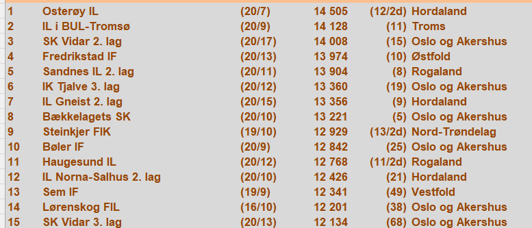 Resultatene for lagserien i Norsk Friidrett foreligger nå.