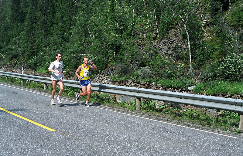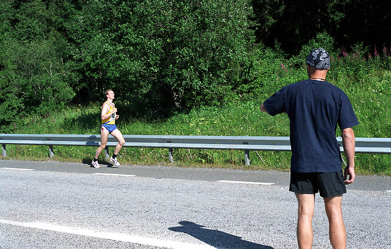 Per Kr. Saastad var vår ankermann inn i Østersund i 2002, og løp en halvmaraton, 21 km, i stekende hete. Det var ikke fritt for at dette gikk en anelse tungt. Dette er et faktum og naturligvis ikke en kritikk av Per, som vi ser her: Per Kristian 1, Per Kristian 2, Per Kristian 3, Per Kristian 4.